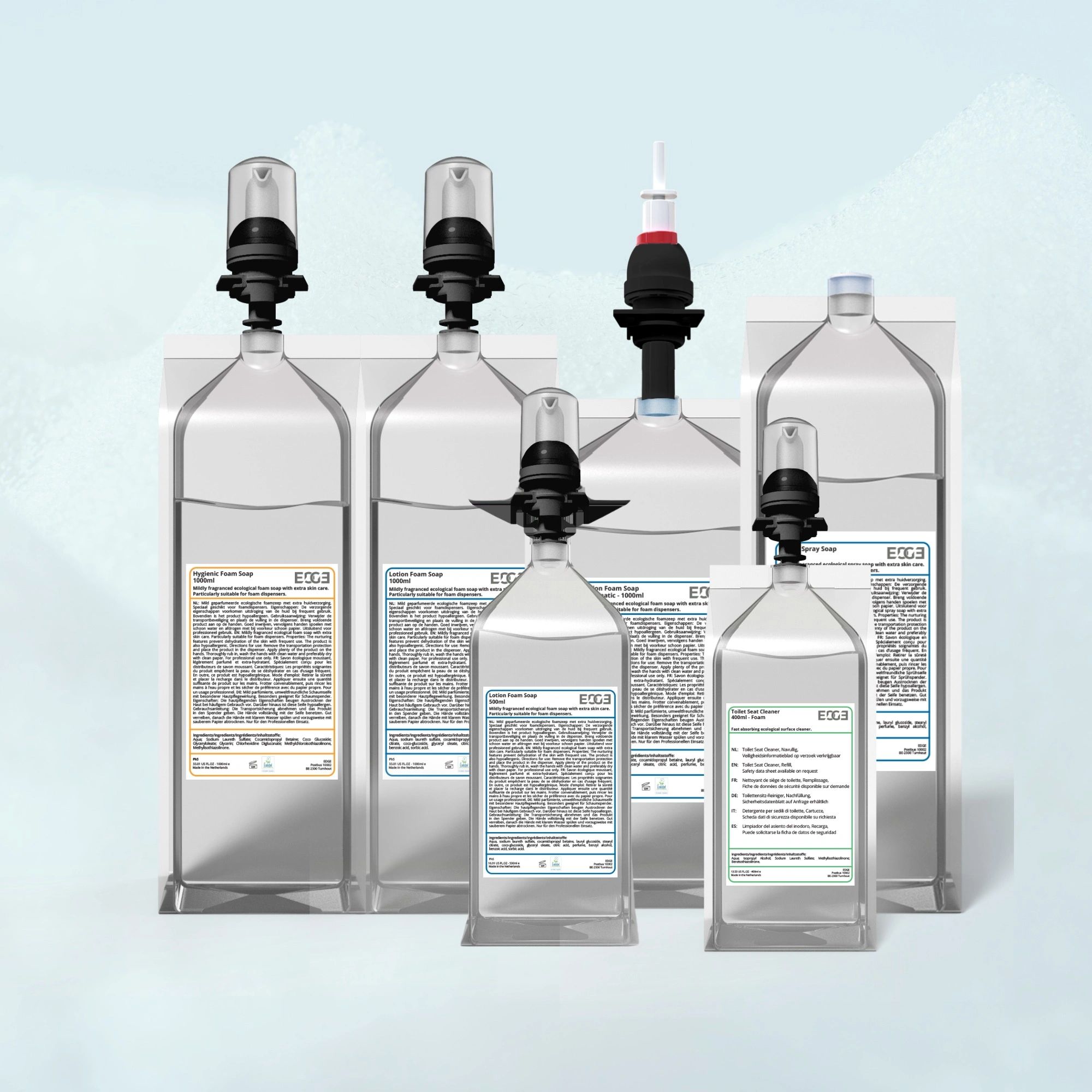 The EDGE Q-Range Refills offer effective, high quality alcohol gel, foam soap (hygienic & lotion), spray (lotion) and surface cleaner (foam and spray) options.